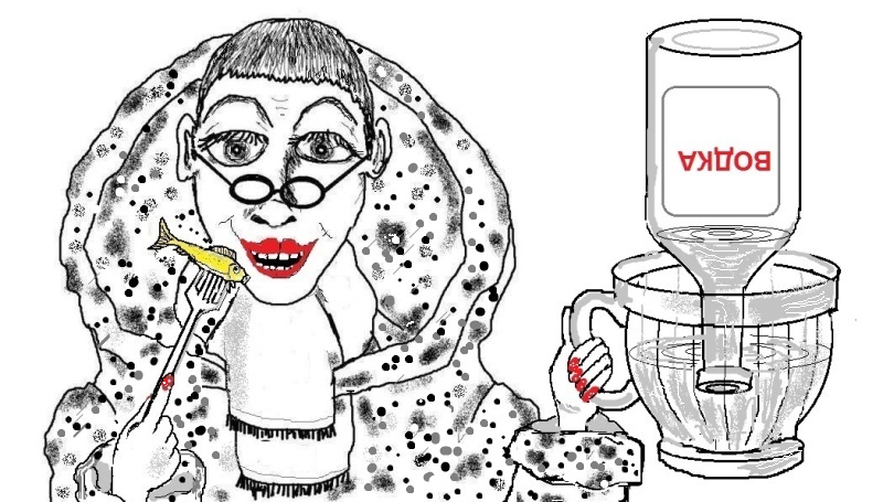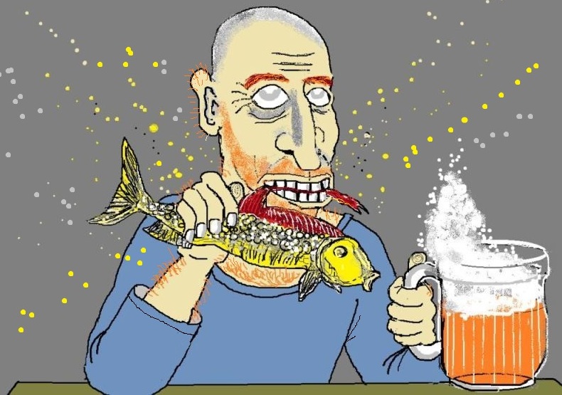С чертями на плечах хмельные мужики.